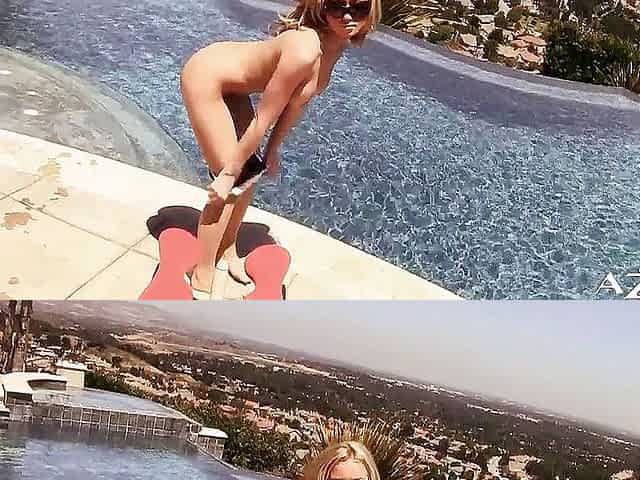 Rachel Aziani pleasures herself with dildo by the pool
