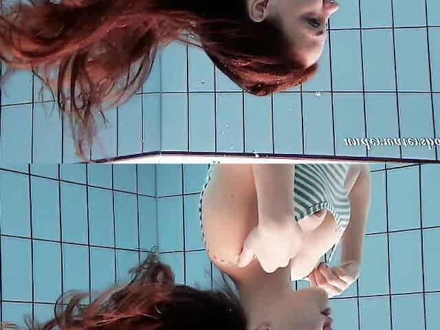 Red haired sweetheart with petite melons took off her bikini in the swimming pool, just for enjoyment