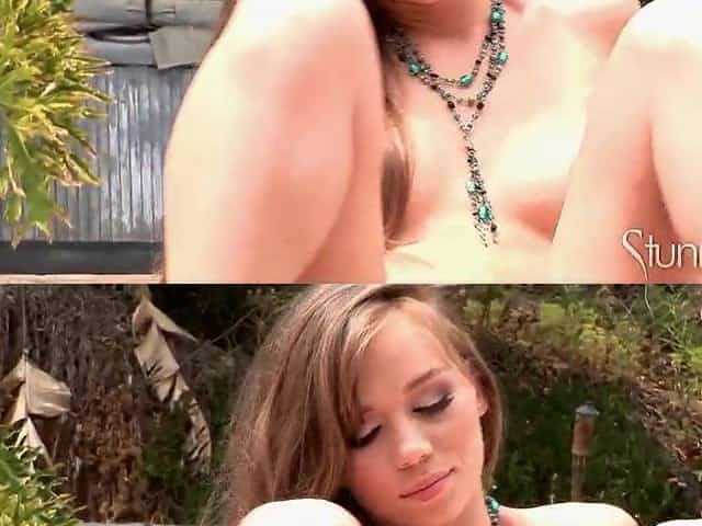 Hawt, Russian pornstar, Mary Kalisy got in nature's garb and started masturbating next to the swimming pool
