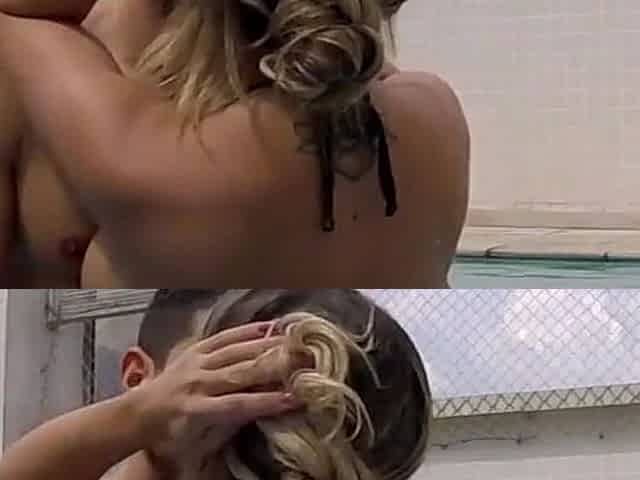 Threesome actions in outdoor activities by the swimming pool - DVD