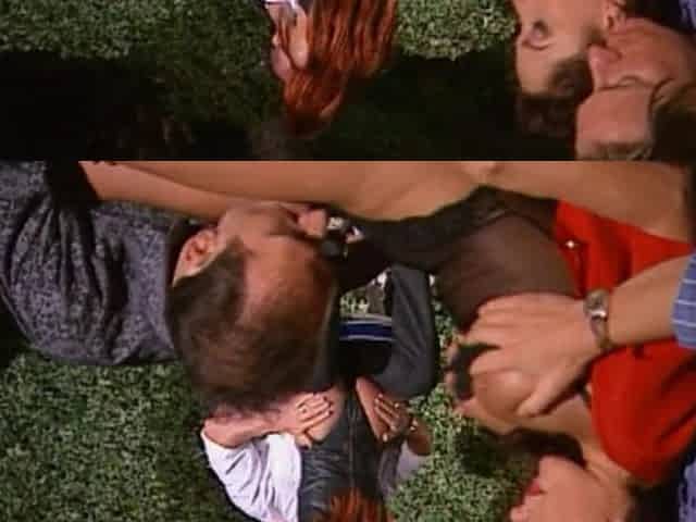 Sexy blonde double cock sucking pussy fucking threesome in the garden
