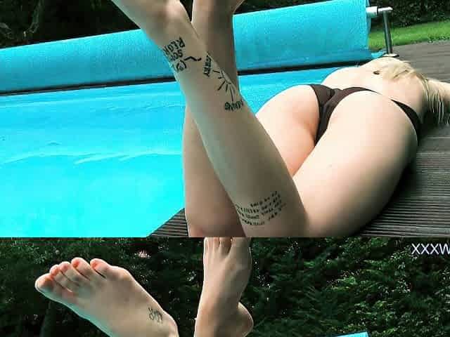 Brunette Cherokee Does Solo Masturbation Show Next to a Swimming pool