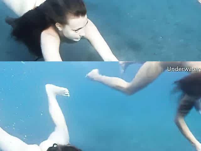Elegant And Flexible Babe Swimming Underwater In The Outdoor Swimming Pool. Swimmingsuite
