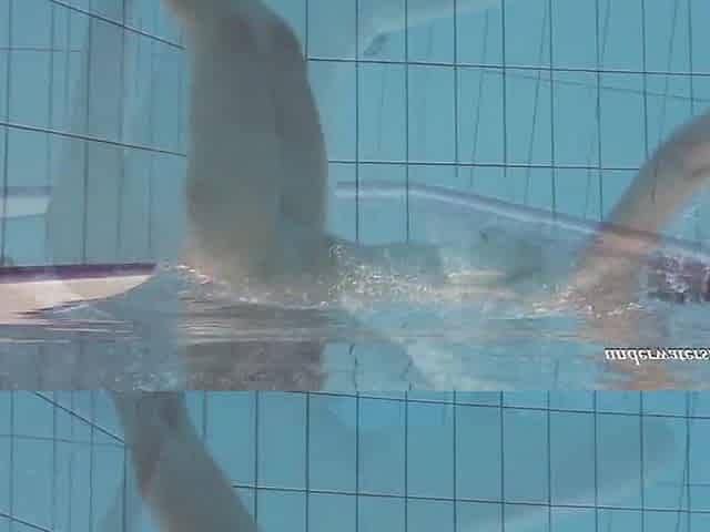 Melisa Mendini is posing stripped in the swimming pool, in the centre of the day
