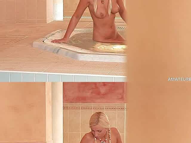 Sucking cock in the hot tub and fucking inside