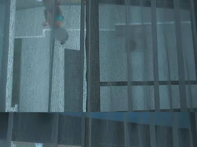 I get playful in a public pool whilst the householder is looking on me in the cameras