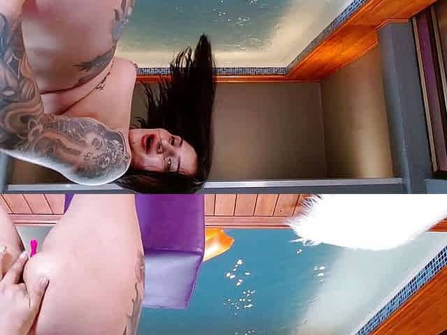Impressive, tattooed stud is screwing a smokin' hawt hottie, Lunna Vaz, in the swimming pool