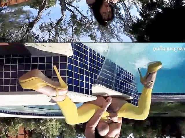 Brunette Hair with large, firm bazookas, Brooke Beretta is gettingfucked hard, next to the swimming pool