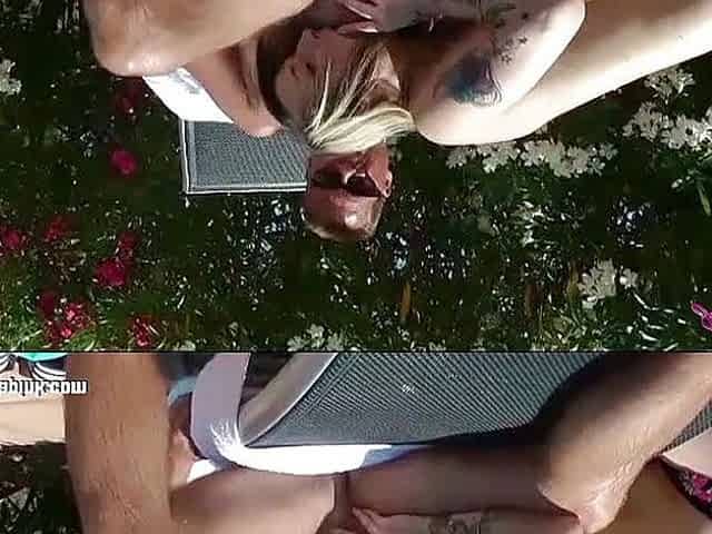 Nikky Clarisse is having anal sex next to the swimming pool, in the centre of the day