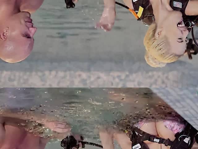 Swimming In Lesbo Blonde Neighbors Pool Like Mermaid