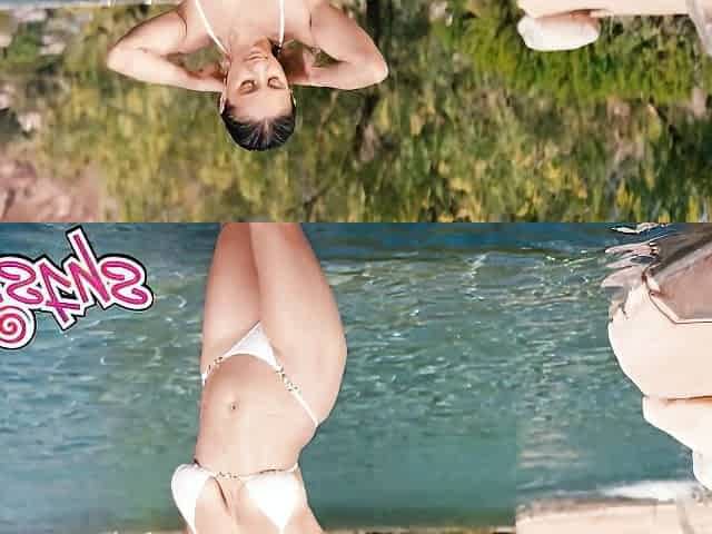 Stunning Susy Gala in swimsuit gets pounded and glazed by the pool