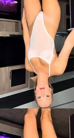 Caught by Step Sister wearing her one piece Swimsuit and leggings ended in a footjob