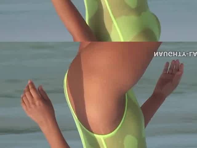 Black Swimsuit Model Sure Of Her Pussy Magic