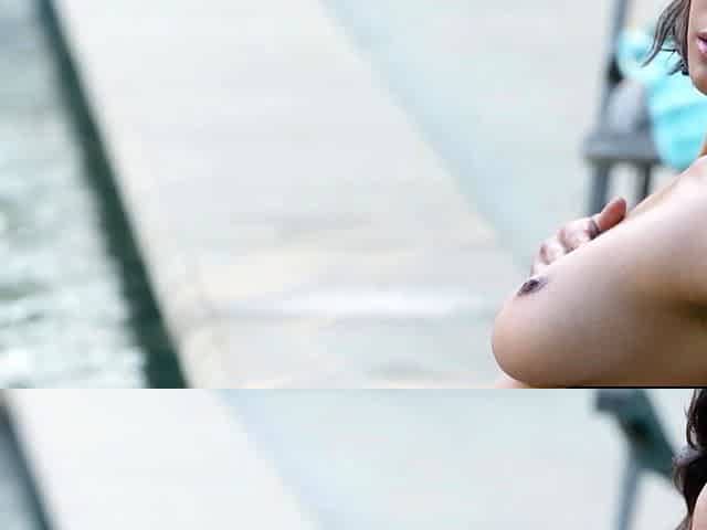 Katarina Meis in swimsuit - Oiled Katarina solo outdoors by the pool