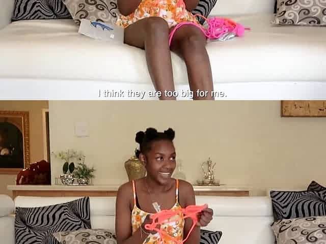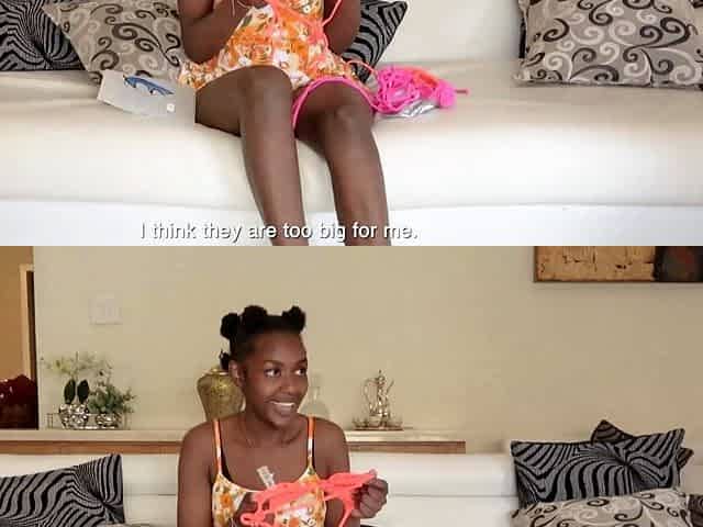 Hot Ebony Teen Model Wearing Swimsuit For Audition Teases Big Cock Producer