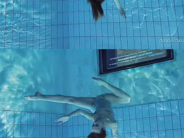 Pink swimsuit babe Liza Bubarek stripping underwater
