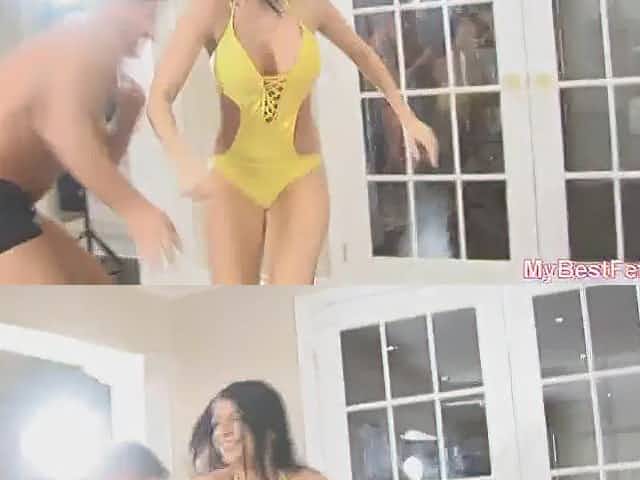 Japanese babe swimsuit grinds before cumshot
