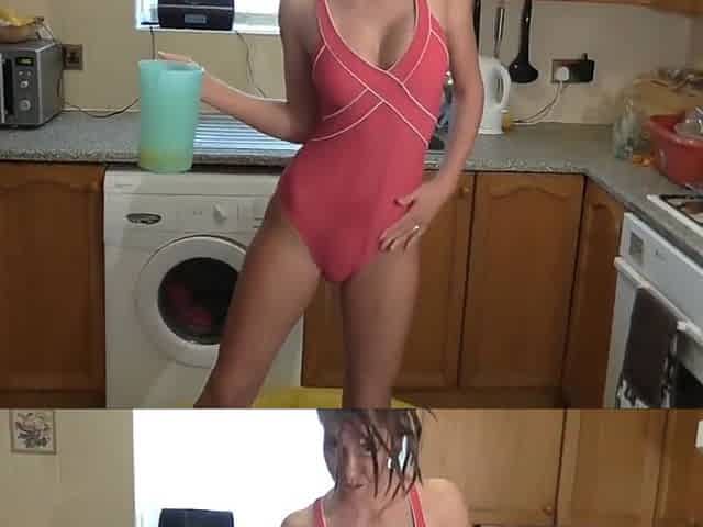Blonde House Wife MILF Massage Fucking Covered in Baby Oil Swimsuit Private Session