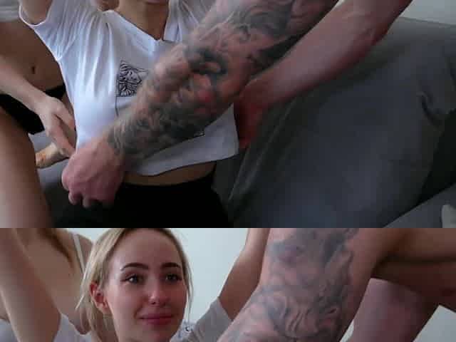 2 Sexy Blondes are Drilled and Cummed in the twat by a man with a Large ramrod!