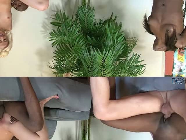 Zealous bootyful ebony nympho rides white dick while black stud fucks white gal
