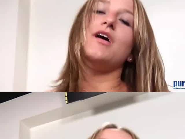 Cute blonde teen with chubby pussy rides a long sex toy