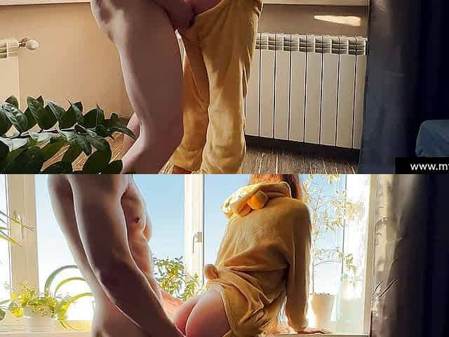 Slim body tall brunette girlfriend with young fine body bend over and gets fucked from behind