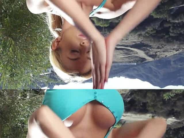 Tall and slender teen with flawless tanned skin and beautiful large natural boobs named Victoria Sweet stops her golf car to mak
