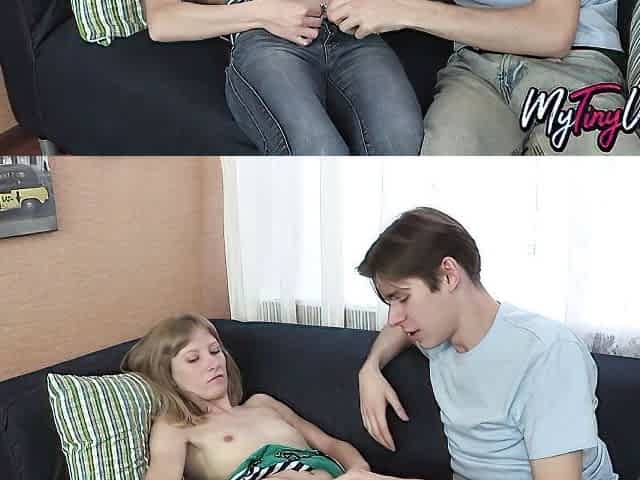 Long legged tall teen babe Alice Klay spreads her legs for a fuck