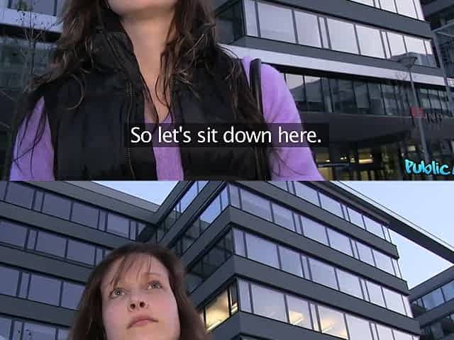 Public Agent Convinces Tall Brunette Beauty To Fuck Him In An Open Field 1