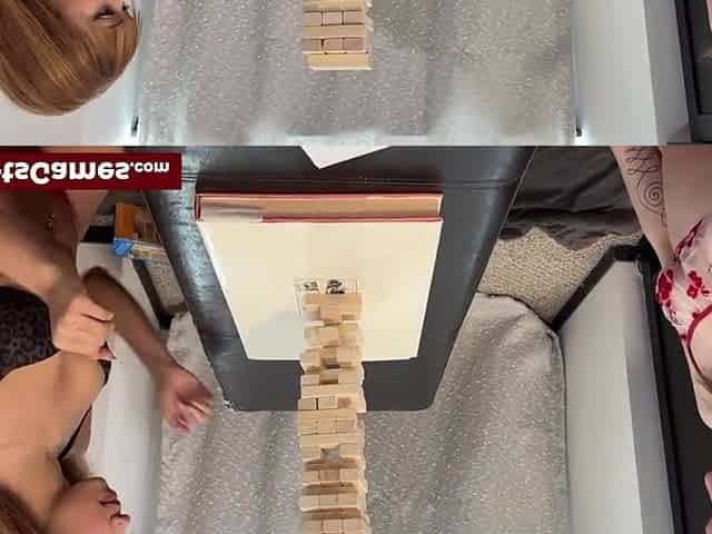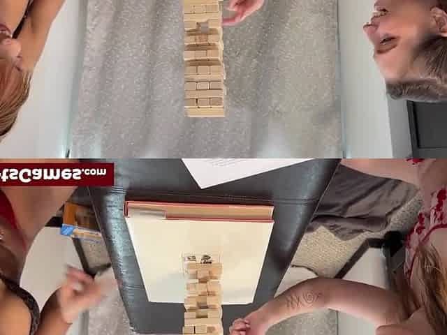 A Tall Tumble Tower Strip Game With A Hot Lesbian Couple - Celestina Blooms And Aften Opal
