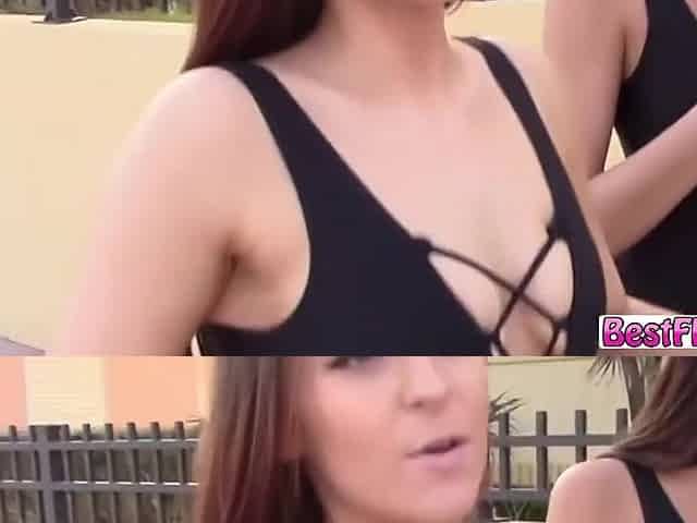 "Luxurious busty latina sucks and fucks hard by the pool"