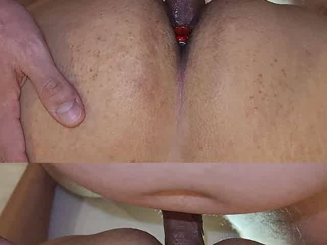 Anal beads and a big hard cock enters her big tanned