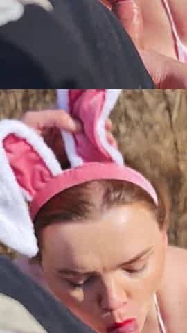 Polish Rabbit Fucked in the Field. He Sucks Cock Until He Cums on His Tits