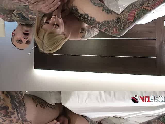 Blonde Tattooed Wife Fulfills Fantasy With Her Husband Best Friend