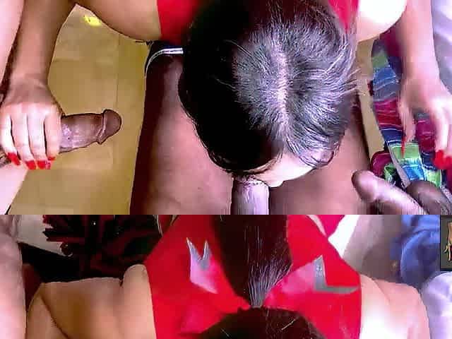 Black brunette hair sucks multiple hard ramrods previous to cumming