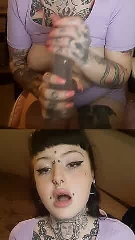 Blonde Tattooed Babe Sucks My Cock on Stream