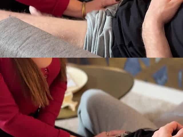 Nerdy Slut Sucks and Slurps Balls While Friend Masturbates