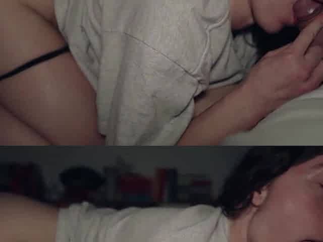 Banging my cute neighbour with my buff boyfriend watching jerking off his tiny ramrod