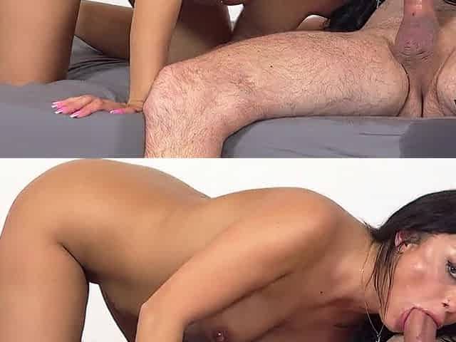 Sexy beauty gets cunt screwed by a monster jock then sucks cum off it
