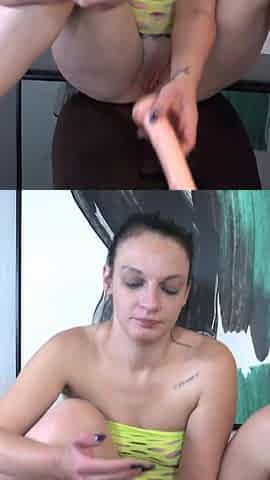 Tatted MILF Riding Dilfo Like It Owes Her Money