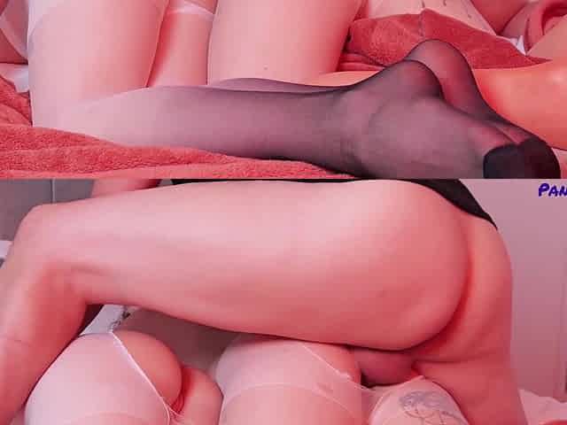 Guy with a Big Cock Gets Two Horny Sluts with Tattoos to Wear Pantyhose in a FFM Threesome