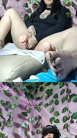 Dominant Lesbian Girlfriend Feet Licked by Devoted Girl Worship