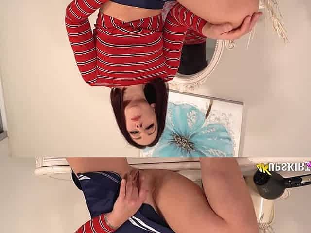 Solo brunette hair teen Kwini Kim plays with a giant sex tool in VR.