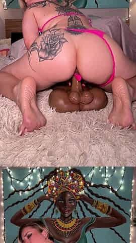 A Tattoed Horny Black Girl Gets Her Pussy Destroyed by Her Friends Big Black Cock.