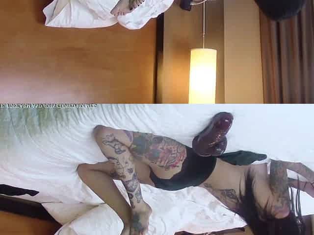 Tattooed Shaved MILF Chaos Costa, Masturbates with Toys
