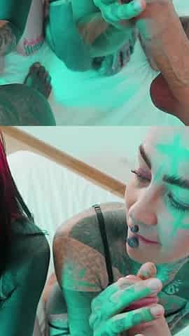 Tattooed Girls in a Rough Foursome - Gaping Anal, ATM & POV