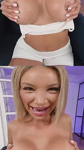 Curvy Brunette hair's HUGE 36DDDS Bounce in VR