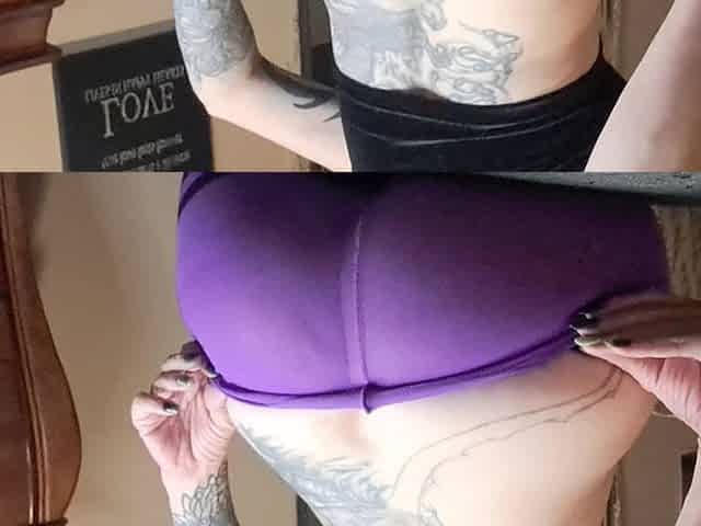 Goth Asscrack Tease in Striped Pantyhose