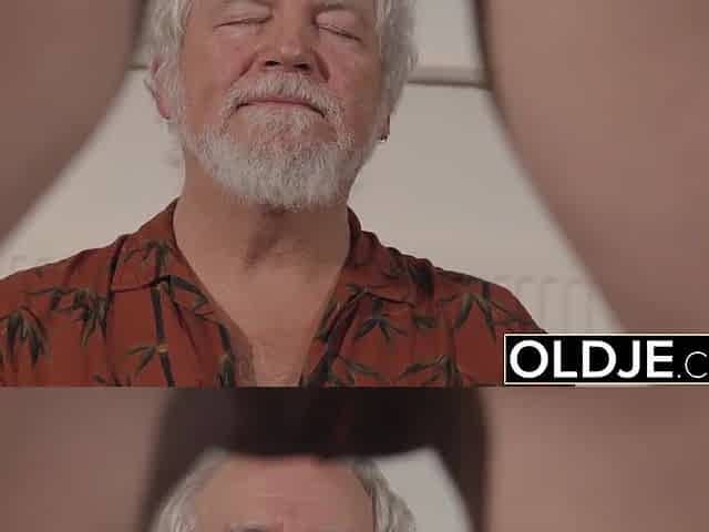 Teen Interrupts Grand-dad from Yoga And Sucks his Dick moist and hard