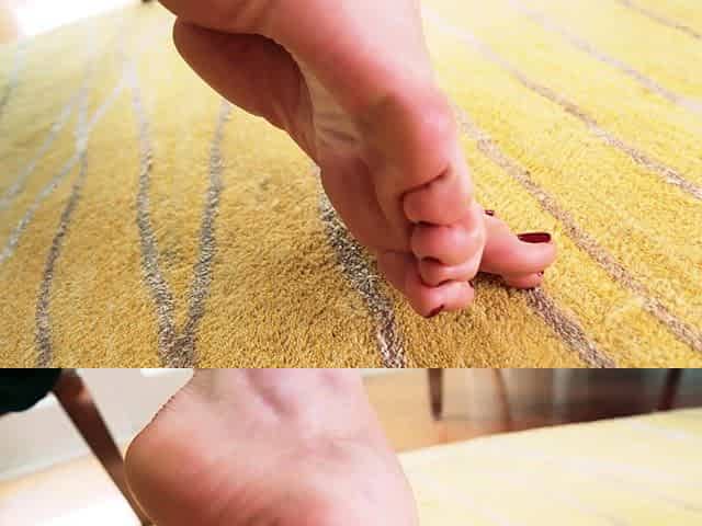 Brunette bombshell teases with her shaved pussy and foot fetish